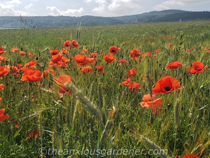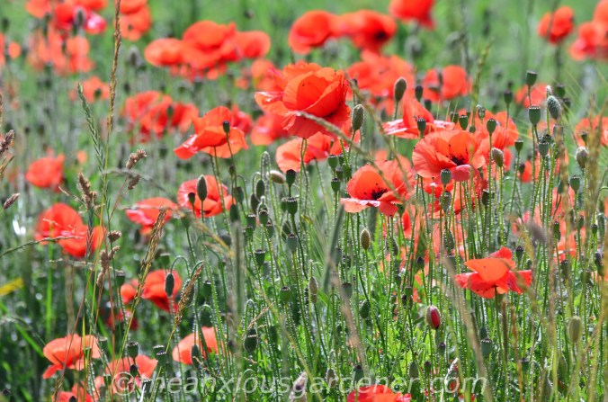 wheat fields speckled with summer poppies;