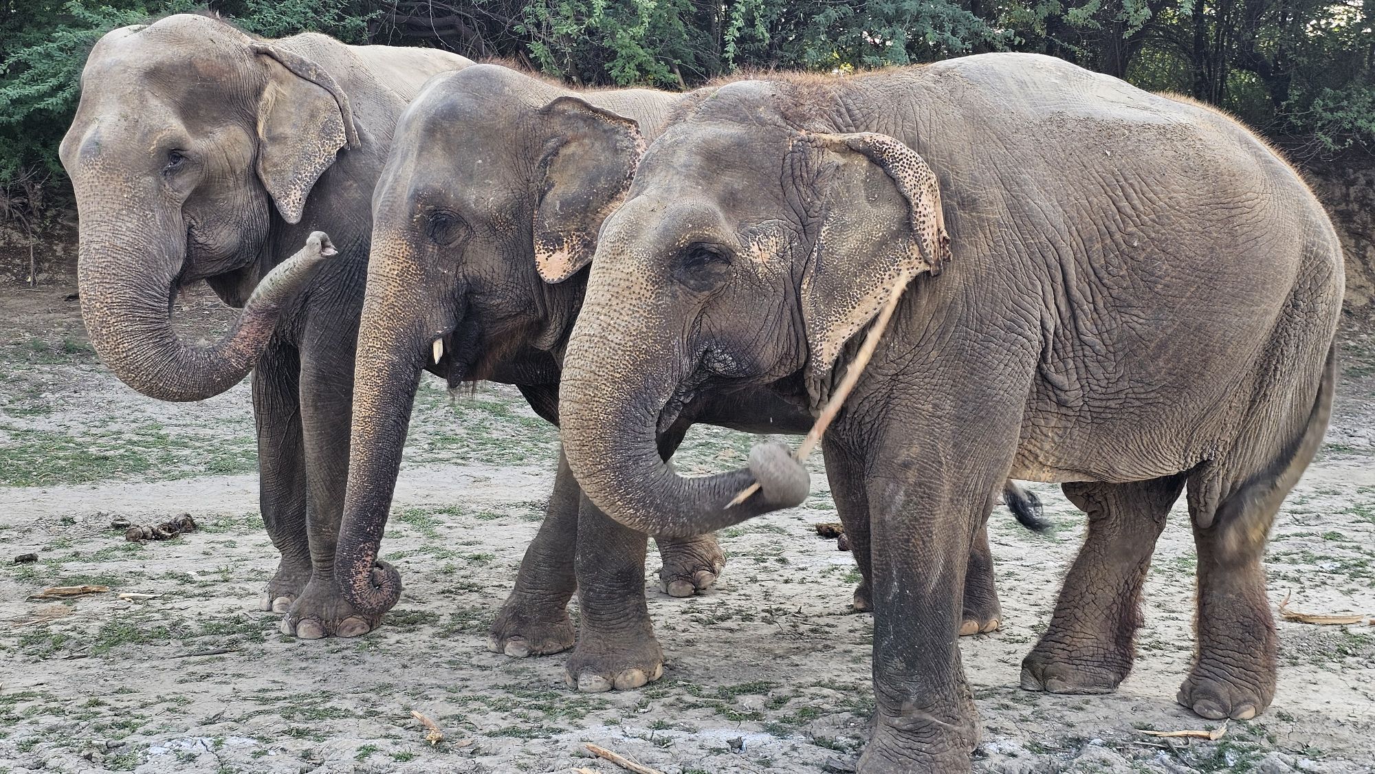 Holly is now safe at the Wildlife SOS elephant hospital and by sensing the ground with her trunk and following her two friends, (one of whom has picked up a stick to scratch behind a particularly itchy ear) she’s able to amble along for twice daily walks outside the compound.